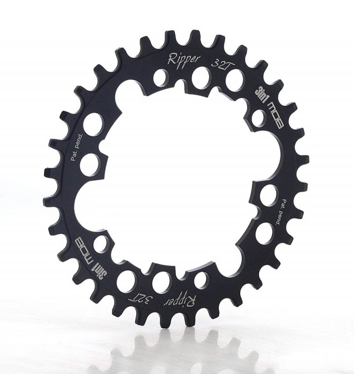 Coro MOB Ripper Single 3IN1 preta 32D, usinada em CNC, com patente em registro, a única compatível com 3 tipos de BCD Shimano 104 – 96mm e Sram 94mm.