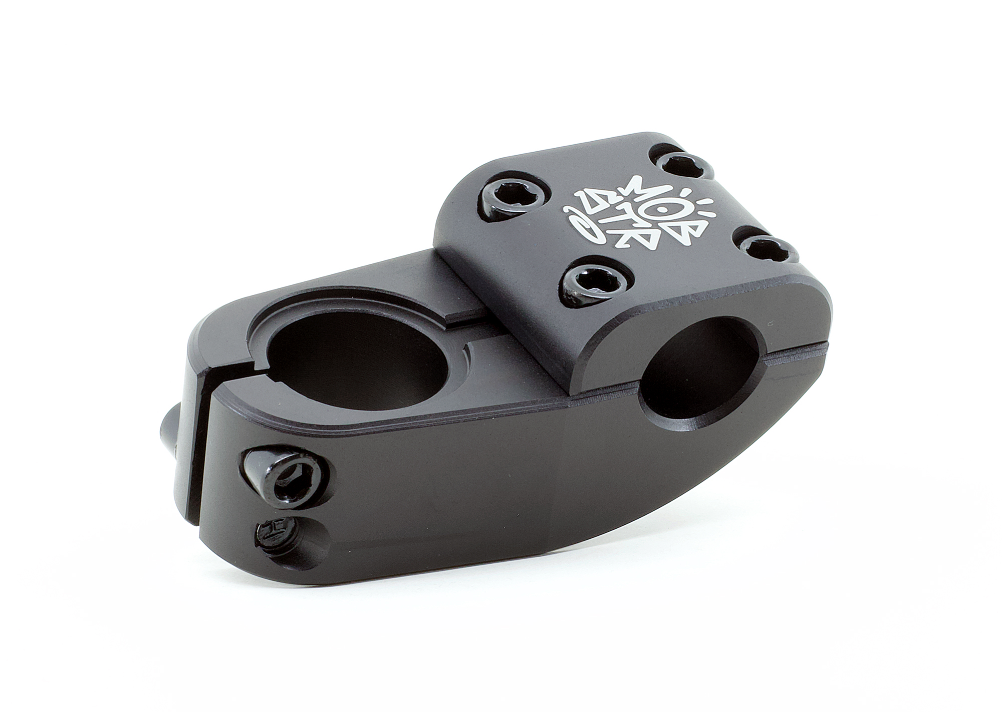 Mesa MOB BMX Fuss top load preta, 100% usinada em CNC, 50mm de avanço, 34mm de elevação, com montagem superior e parafusos M8.