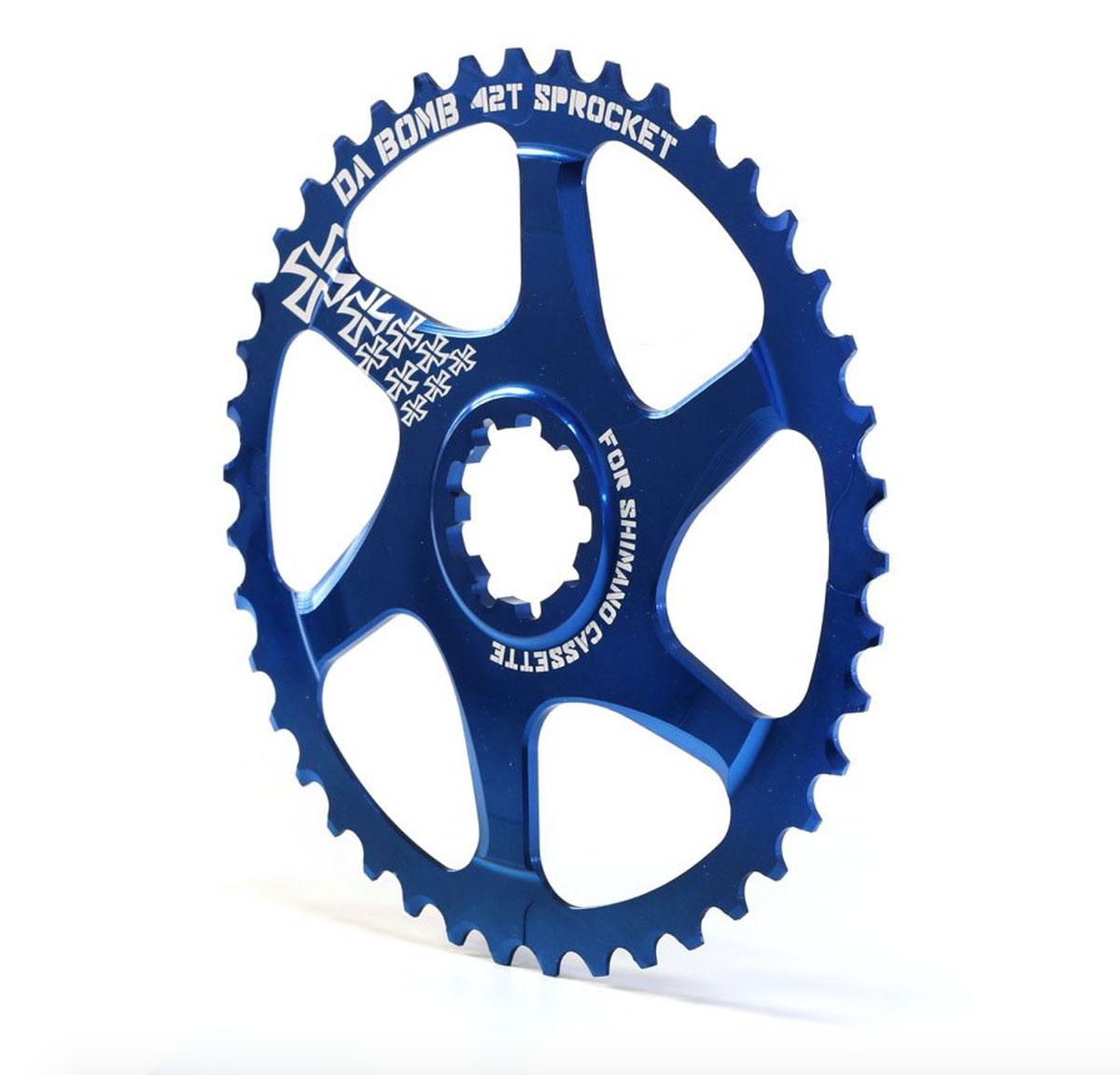Pinhão de cassete Da Bomb 42D azul, compatível com padrão Shimano, usinado em alumínio 7075 em CNC.
