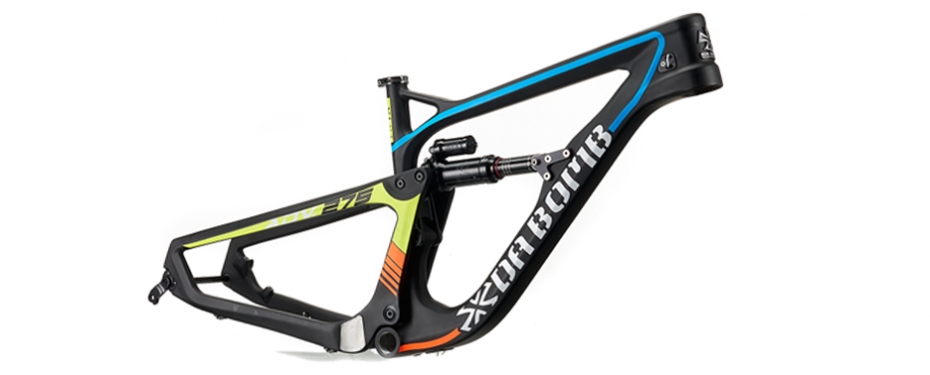 Quadro Da Bomb ADV275 17″ 27,5/29er full, curso 5,9″ (150mm) totalmente em fibra de carbono, c/ passagem interna de cabos, eixo de 12x148mm que acompanha o quadro, caixa de direção ZS44/ZS56, canote 30,9mm, montagem de freio à disco post mount, o chain stay possui uma proteção de aço inox caso a corrente caia. Peso 3094g c/ shock Rock Shox RS-Super Deluxe RC3 L205x60.