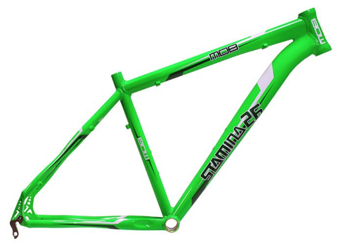Quadro MOB Stamina 26″ verde, indicado para MTB iniciante com pivô de V-Brake e suporte para freio à disco.